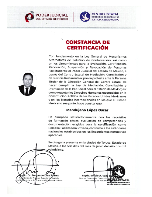 Soy abogado y mediador privado registrado (PFPRIV/076/06/2025). Mi enfoque es integral: cuando tu caso requiere estrategia legal, la construimos; y cuando el conflicto puede resolverse de manera más humana y eficiente, facilito acuerdos mediante mediación/conciliación para que recuperes claridad, tiempo y paz.